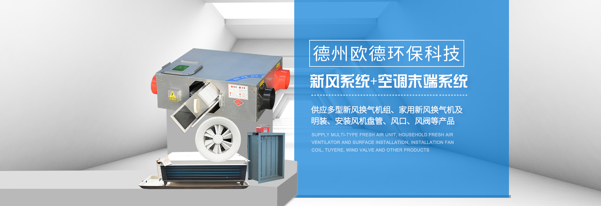 德州歐德環保科技有限公司位于山東省德州市武城經濟開發區,是一家集空調設備產、研、銷相結合的現代化企業。歐德以技術水平、服務標準,贏得客戶的信任。公司建有現代化水平的商用空調設備生產線與末端設備生產線,可定制生產多型空調設備?! 」局饕a品:風機(排煙風機、軸流風機、邊墻風機、斜流風機(混流風機)、屋頂風機、離心風機、誘導風機)、新風處理機組、吊頂式空調器、風機盤管(臥式暗裝風機盤管、臥式明裝風機盤管、立式明裝風機盤管、卡式風機盤管等),各類通風管道(共板法蘭風管、酚醛風···